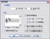 「調号変更」機能を使うことで曲の全部、または一部を簡単に移調できます。