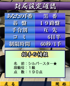 対局相手が見つかったら対局設定を行います。