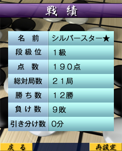 対局した結果で点数が上下し戦績が残ります。
