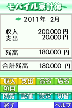 携帯電話で家計を管理する月額不要で通信不要な家計簿EZアプリです。携帯電話のフルスクリーン機能を使って、より見やすく管理しやすい家計簿です。