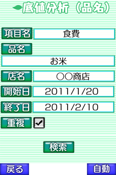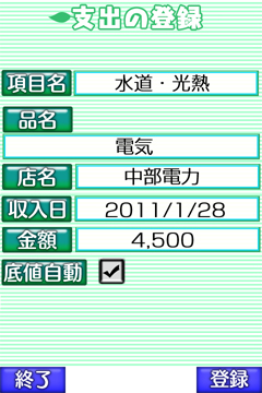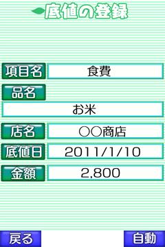 また、支出を登録する際に「底値自動」にチェックを入れておけば、自動で同時に底値の登録も出来ます。