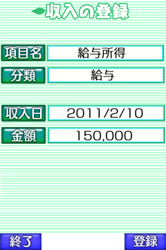 支出と同様、収入も詳細な部分まで登録出来ます。