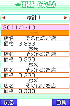 支出や収入を登録する時に使用する「店名」と「品目名」を各項目120個まで登録出来ます。