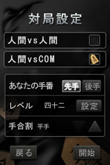 | ◆手合割を平手〜二枚落ちまで設定可能 |