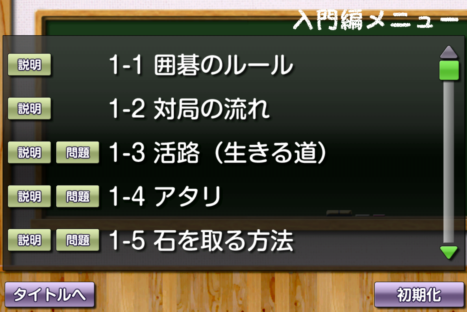説明形式と問題形式によって基礎と応用をきっちり押さえて囲碁をじっくり学ぶことができます。